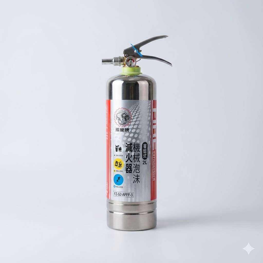 飛龍牌機械泡沫滅火器採用台灣製造泡沫藥劑,能迅速形成均勻泡膜,隔絕空氣、抑制再燃, 對 A、B 、C類火災均具有極佳的撲滅效果。產品通過消防署審核認可、UL/ULC 認證藥劑, 也因為其無毒、無 PFOS、可生物分解的特性,被視為更安全、更環保的選擇。